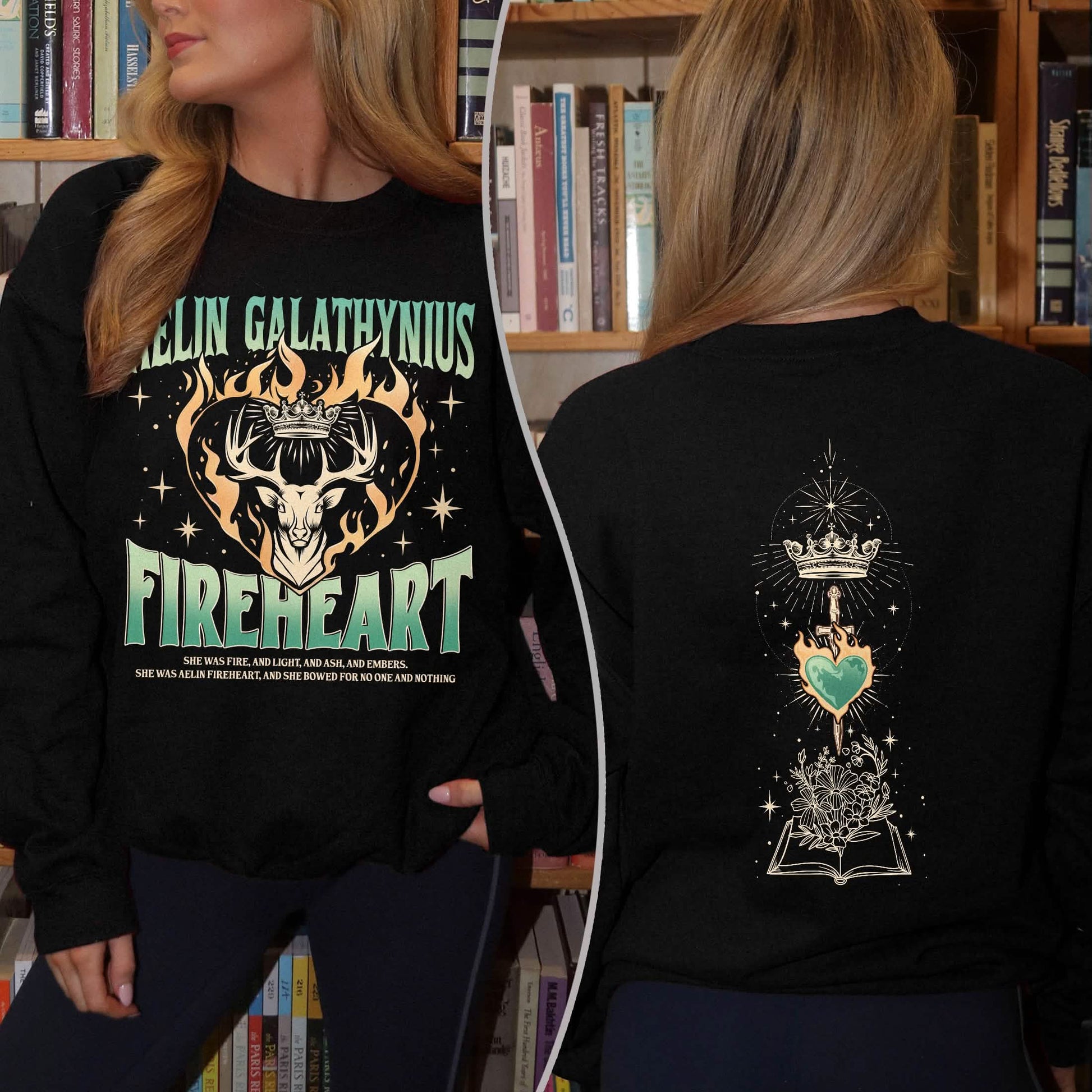 Step into the world of Sarah J. Maas with our Aelin Galathynius Fireheart Sweatshirt. This exclusive Terrasen TOG Sweatshirt celebrates the fierce spirit of Aelin Galathynius, inspired by the unforgettable journey in the Throne of Glass series. Wear it to book club meetings, fantasy conventions, or just as a casual statement piece. Embrace your inner Fire-Breathing Queen and let the world know your devotion to Terrasen and beyond!