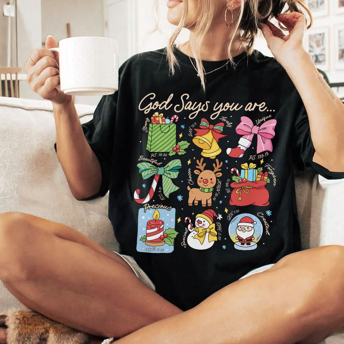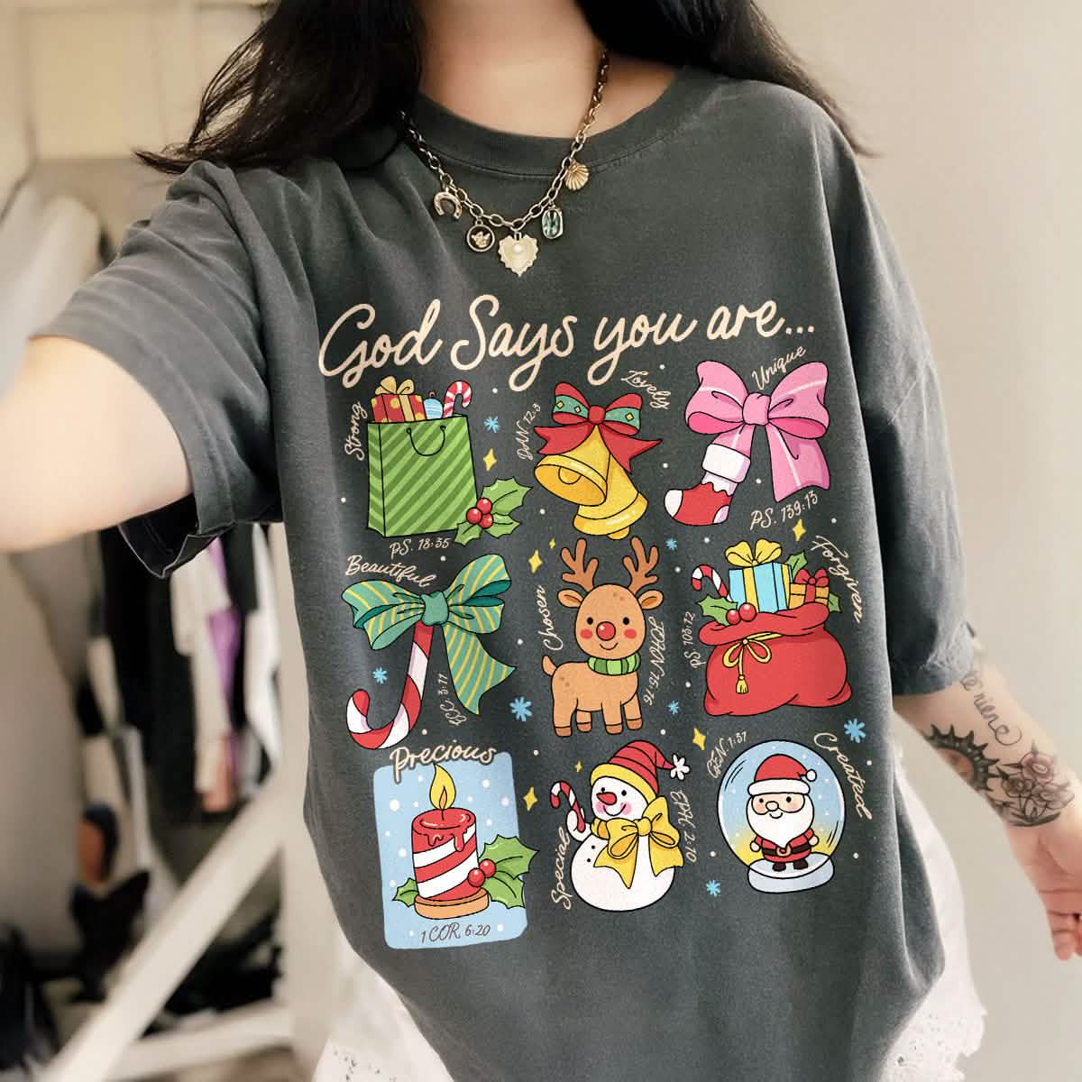 Celebrate faith and the holiday season with this God Says You Are Christian Comfort Colors Shirt. Featuring an uplifting Bible verse design, this cozy unisex tee is a meaningful way to share your love for Christ during Christmas and beyond. Made from premium Comfort Colors cotton, this Christian t-shirt offers a soft, lived-in feel with a relaxed fit perfect for everyday wear, church gatherings, or family holiday celebrations. Whether you’re looking for a thoughtful faith-inspired Christmas gift or a personal reminder of God’s word, this shirt is both stylish and encouraging.