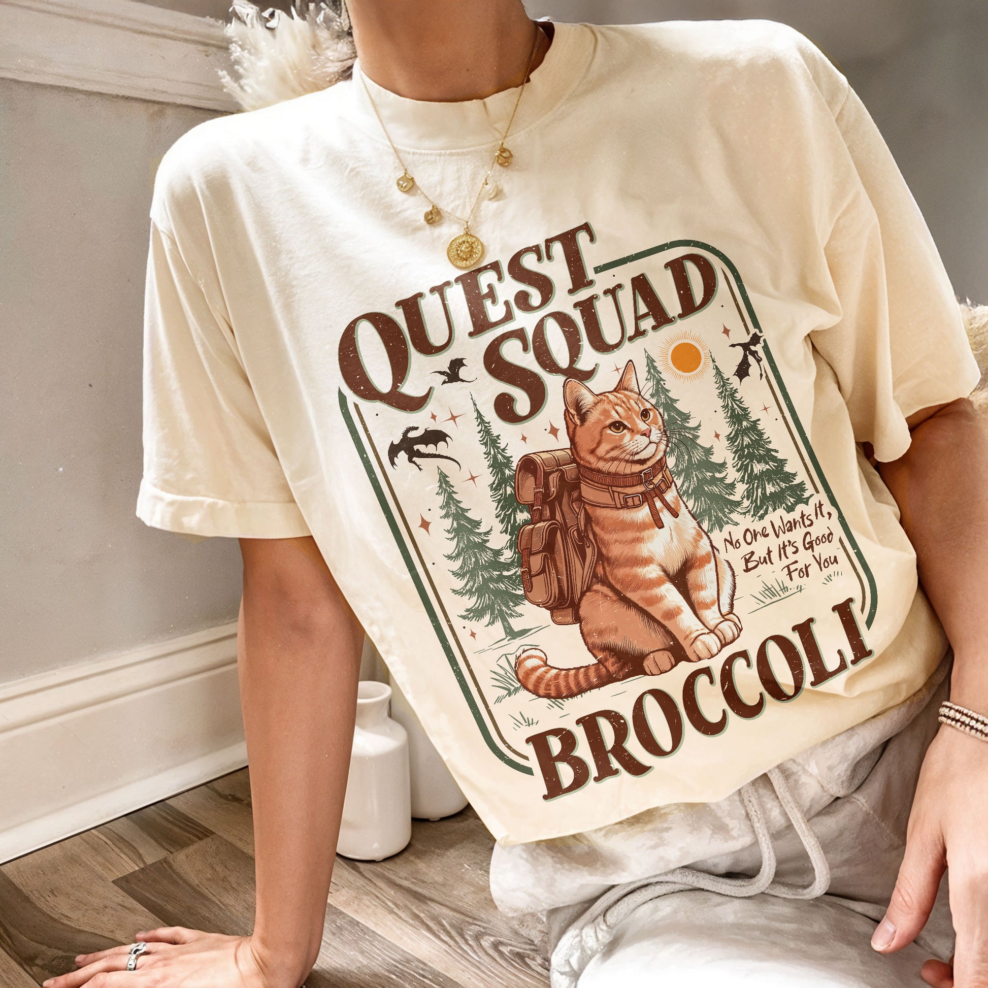 Introducing the Quest Squad Broccoli Comfort Colors Shirt, the perfect blend of style and comfort for fans of the Empyrean series and romance fantasy! Grab your Broccoli Kitten Team shirt now to showcase your love for literature and bring a bit of charm to everyday wear!