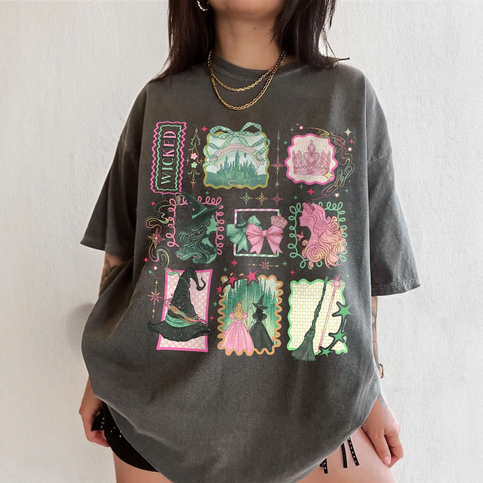 Step into Oz with our Retro Wicked Comfort Colors Shirt. Featuring Elphaba and Glinda in a fun pink-and-green design, this tee is perfect for fans of Wicked the Musical, Broadway, and the new movie. Soft, comfy, and stylish — a must-have for every witchy fan!